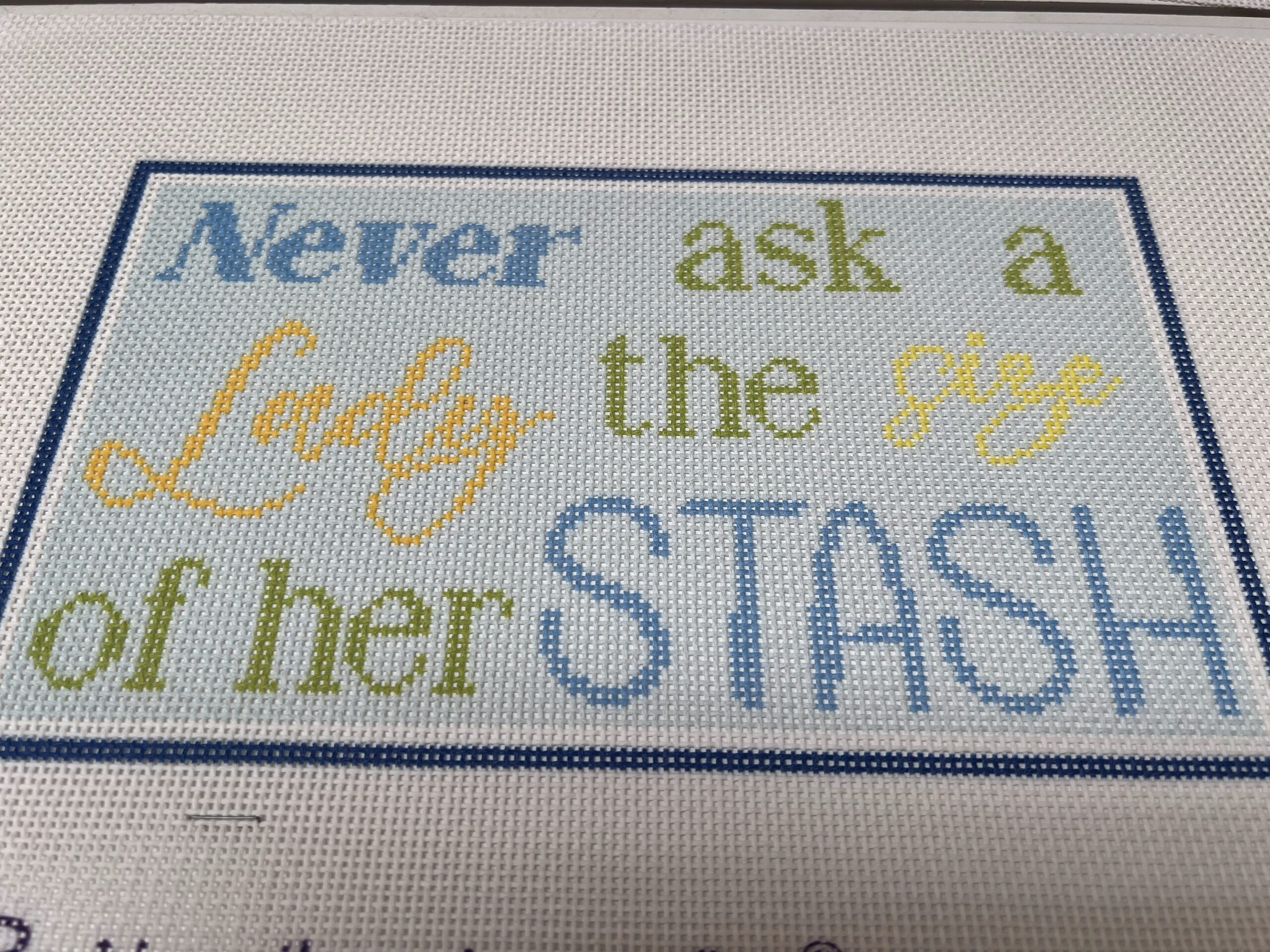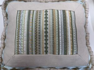 Check our “Shop” Tab for periodic Needlepoint Classes at ALL levels, from Beginner to Advanced. Intro to Needlepoint is taught weekly by appointment, Sampler Stitch Classes (like the pillow above), Ribbon and Threads Classes, and more. Sign Up for our Newsletter to stay up to date on our class list!