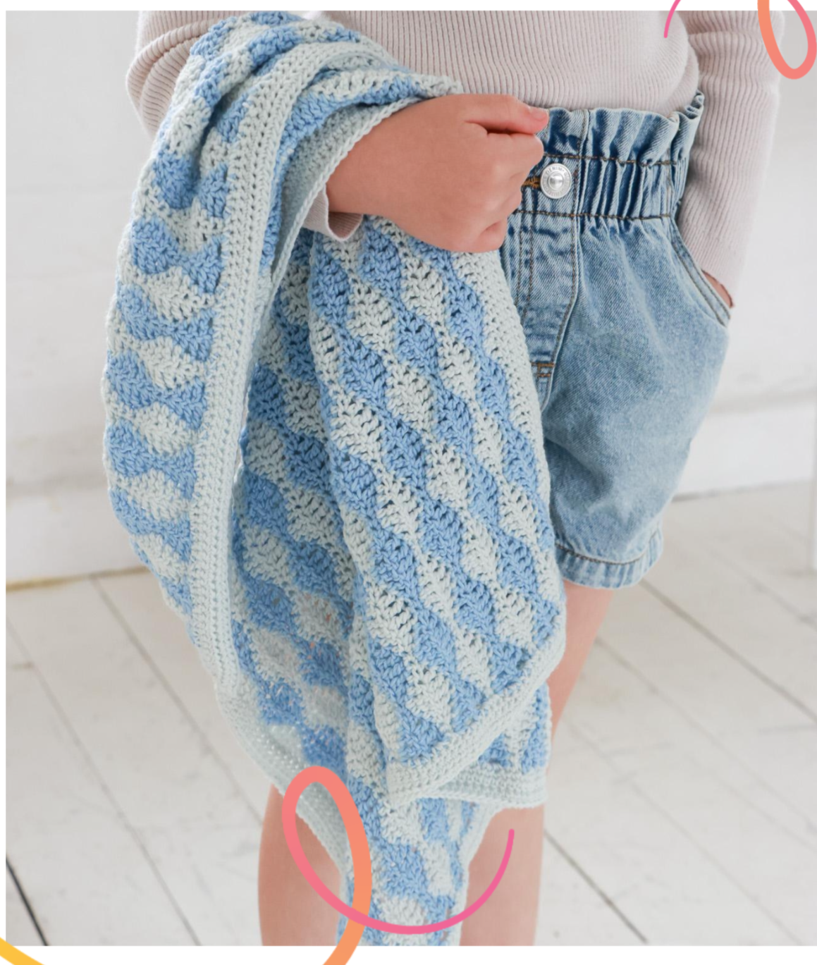 DK or Worsted Weight yarn. Amounts vary depending on size of blanket.